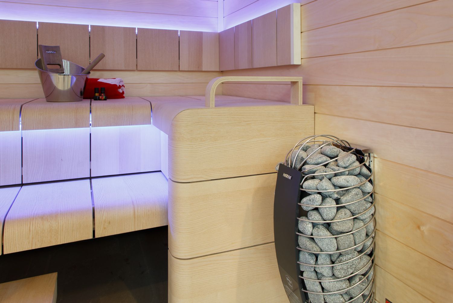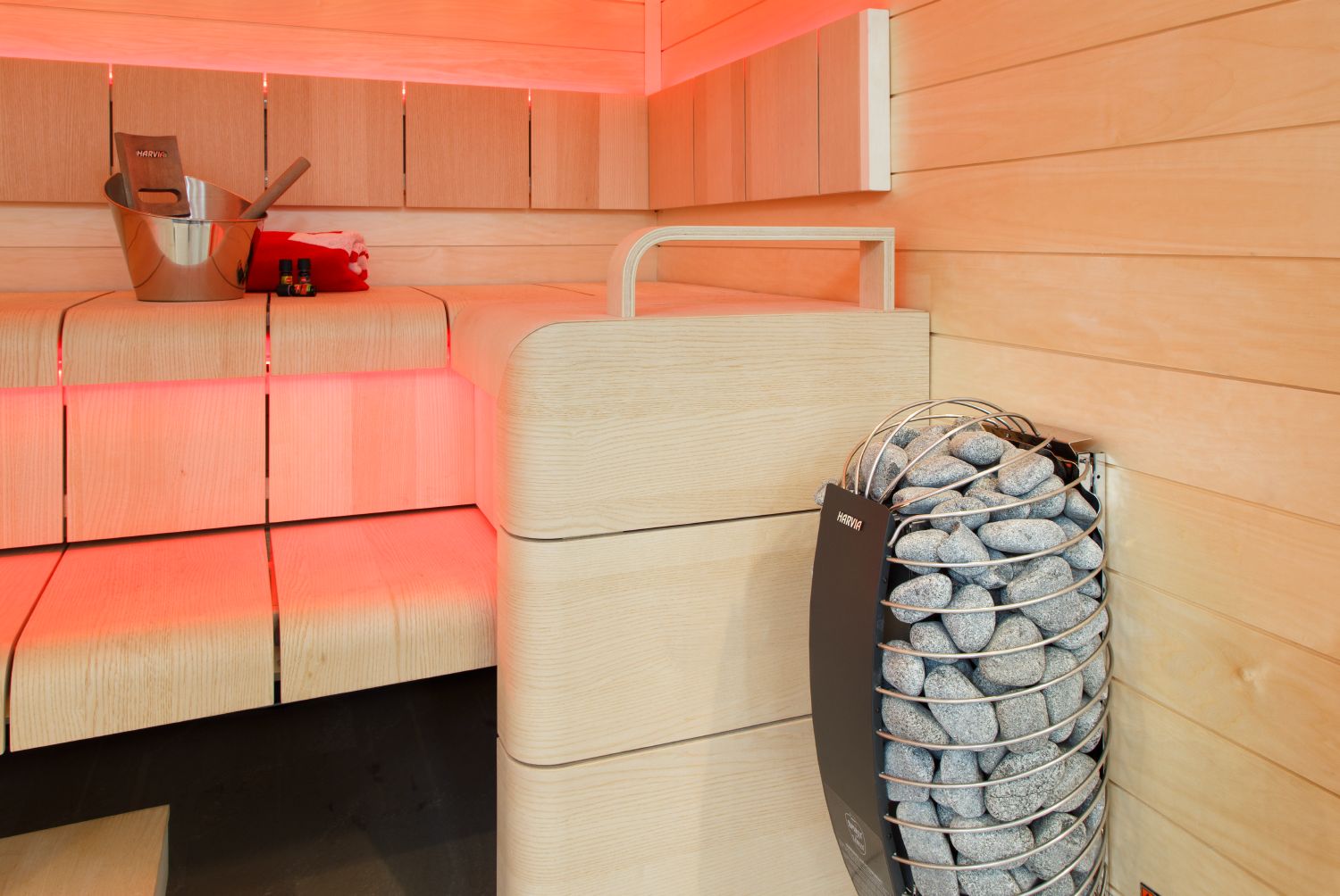 - The elegantly curved shapes of the heater exude a natural design, which is accentuated by round sauna stones. The Harvia Spirit creates a modern, yet elegant atmosphere in the sauna.